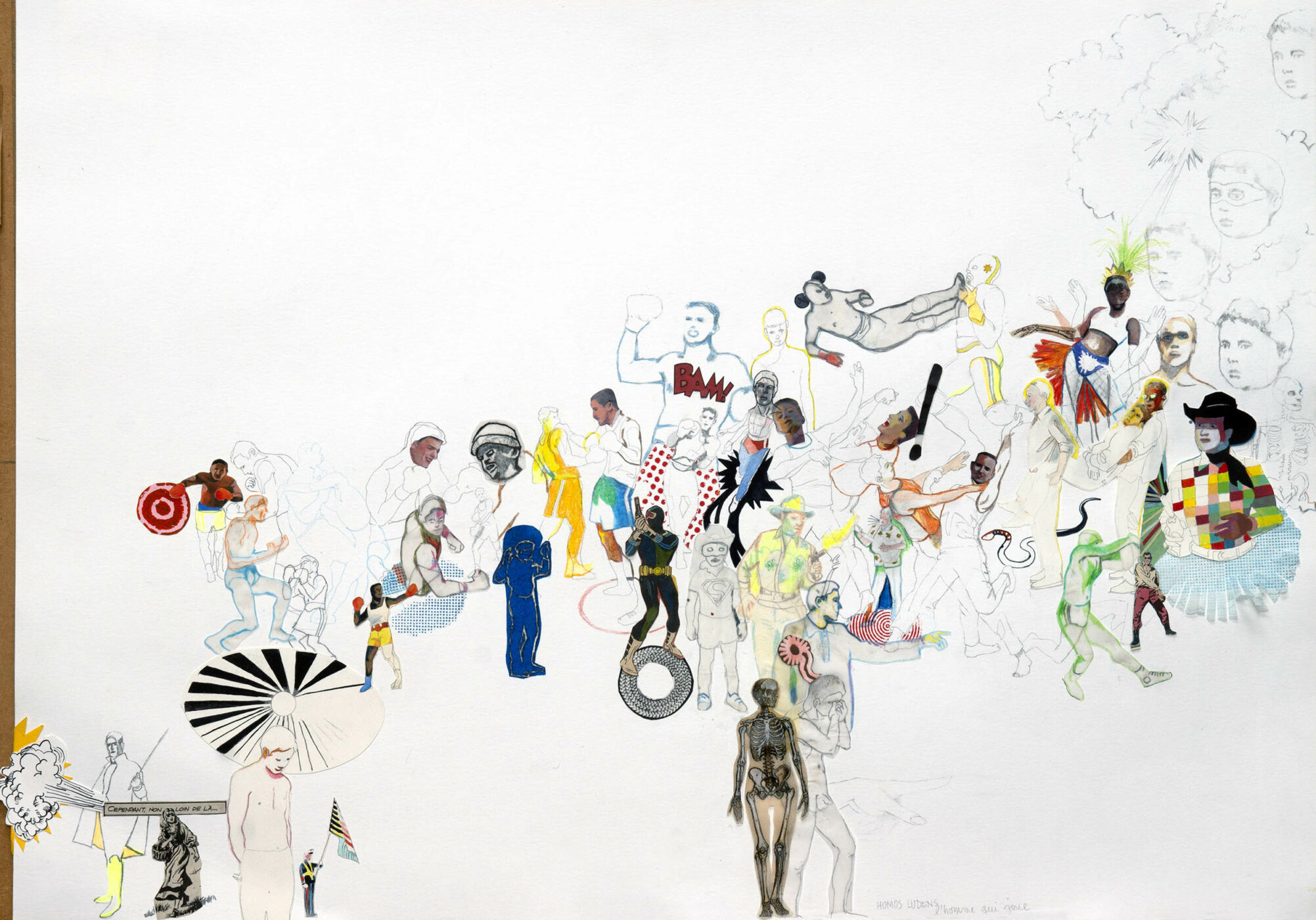 NO ONE PRESSED THE PANIC BUTTON mixed media on paper 145X75